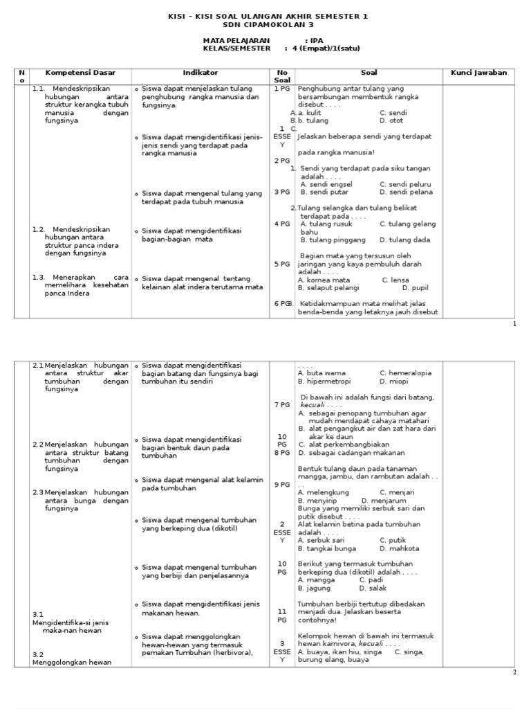 Contoh kisi dan soal uas ipa kelas 5 semester 1. Kisi Kisi Soal PTS Kelas 6 Semester 2 K13 Revisi 2019 ini berfungsi sebagai skema yang pembantu Guru dalam melakukan pembuatan soal selain itu dapat juga diberikan kepada peserta didik sebagai informasi perkiraan pertanyaan apa saja yang nantinya keluar pada saat ujian dilaksanakan. Kisi kisi ipa kelas 7 semester 1 kurikulum 2013Mengidentifikasi bidang ipa yang sedang dipelajari oleh ilmuan dengan tepat.